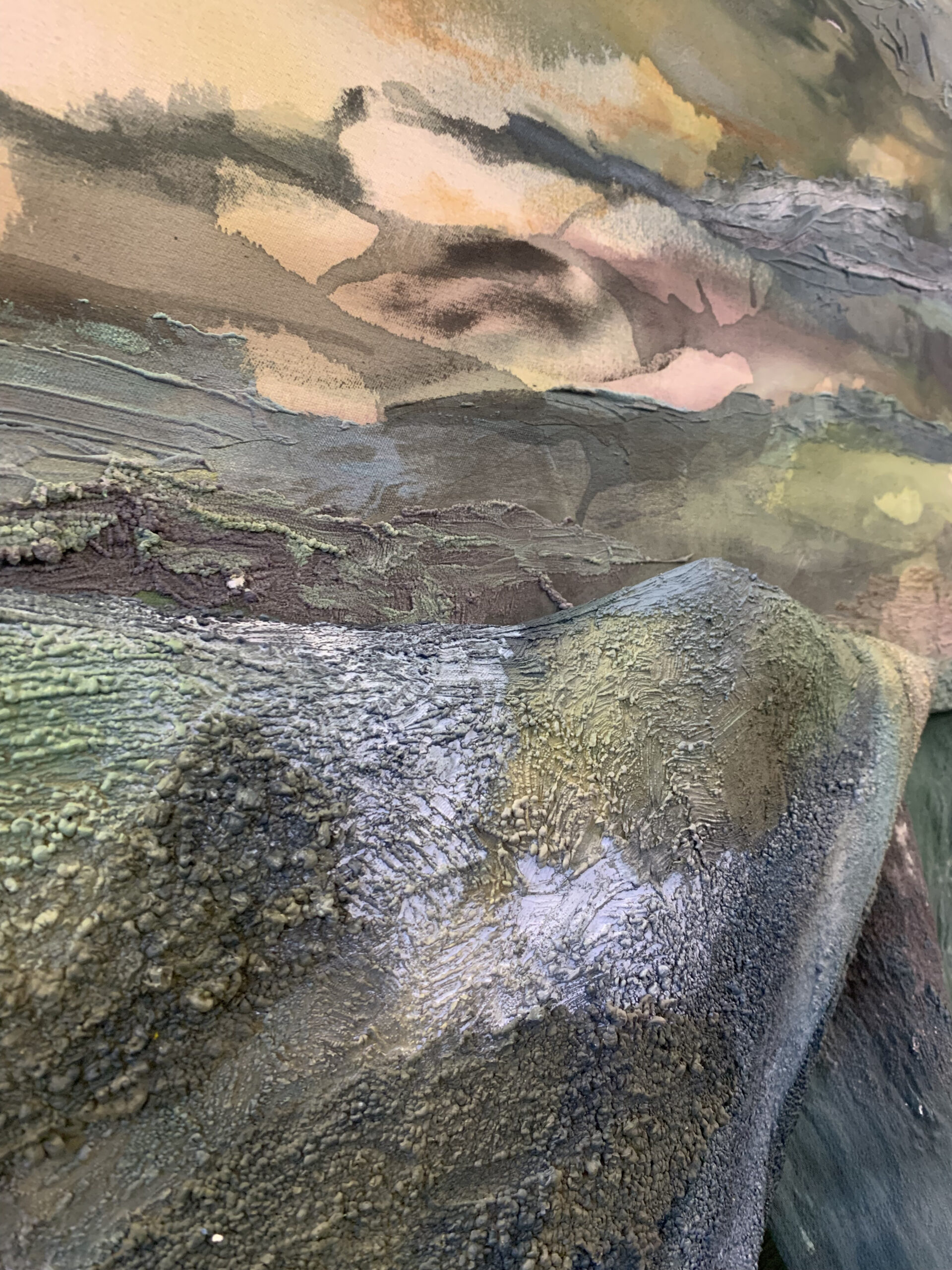Inspired by many plants and animals in our dioramas, artist Sam Parsons intuitively explores the canvas much like discovering a new habitat. His paintings evolve through multiple layers, to become entangled, immersive views with no fixed timeline. Old garments and scrap fabrics emulate organic forms, whilst fleeting glimpses of the animals move through the room.
